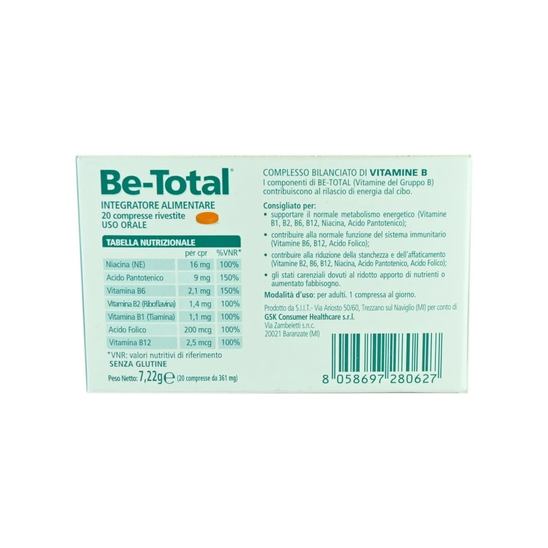 Grazie al complesso di Vitamine del gruppo B, la formula di Be-Total Compresse aiuta a rilasciare energia dal cibo. Aiuta il metabolismo energetico.