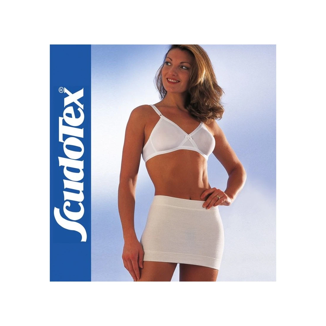 Cintura in morbida e calda lana, tubolare, assicura una perfetta aderenza e vestibilità. Bianca.