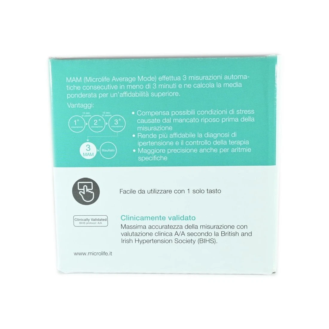 Completamente automatico e clinicamente validato. La tecnologia e la tecnologia IHB permettono la misurazione precisa della pressione e la rilevazione di battito irregolare.