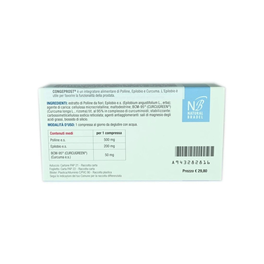 Confezione da 30 compresse senza glutine.