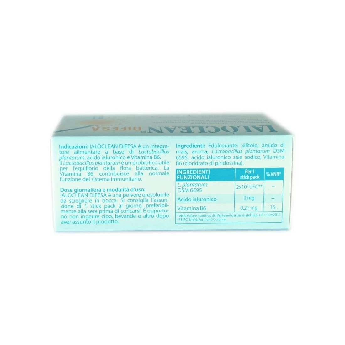 Integratore alimentare a base di Lactobacillus plantarum, acido ialuronico e vitamina B6. Il Lactobacillus plantarum è un probiotico utile per l’equilibrio della flora batterica. La vitamina B6 contribuisce alla normale funzione del sistema immunitario. Gusto panna.
