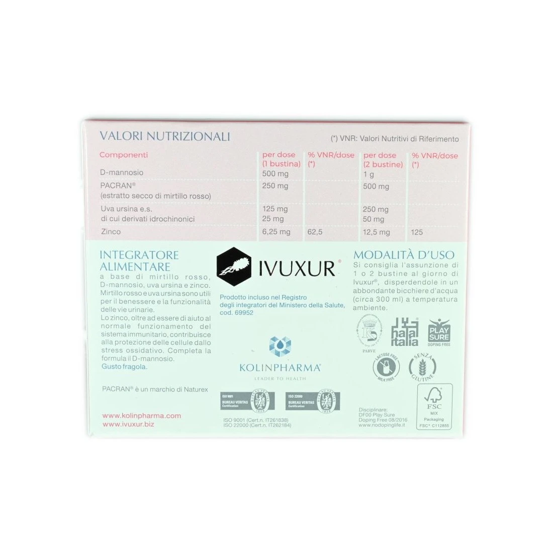 Integratore alimentare a base di PACRAN (estratto secco di mirtillo rosso), D-mannosio, uva ursina e zinco per il benessere delle vie urinarie.