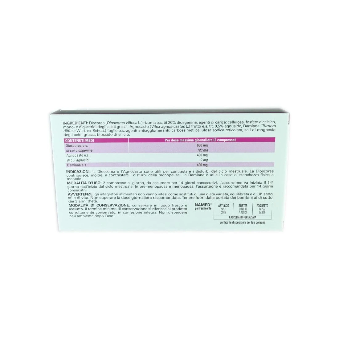 Integratore alimentare a base di estratti di Dioscorea, Agnocasto e Damiana volto a contrastare i disturbi del ciclo mestruale e della menopausa. La damiana inoltre è utile in caso di stanchezza fisica e mentale.