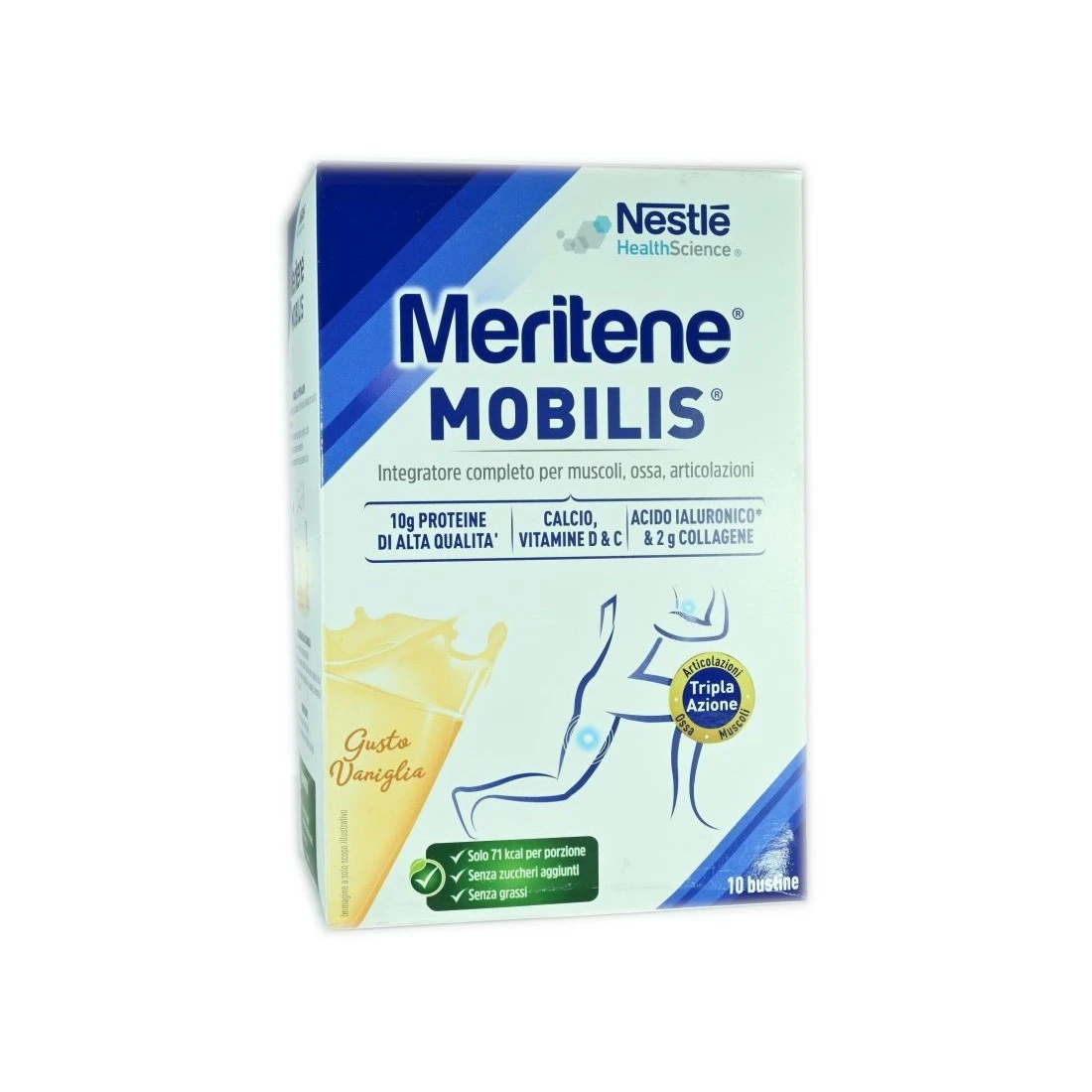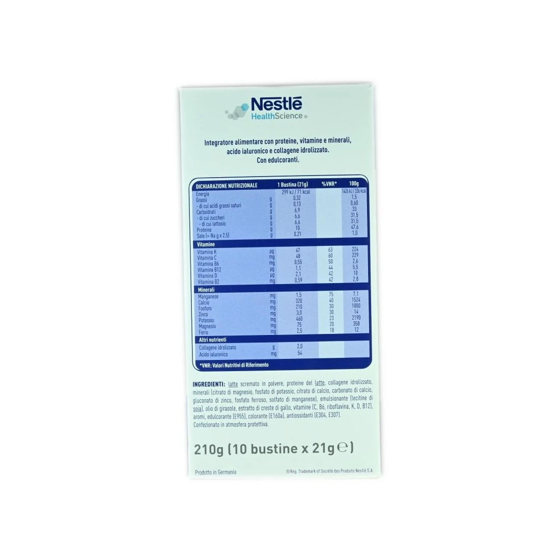 Integratore alimentare specificamente formulato per mantenere la funzionalità di muscoli, ossa e articolazioni grazie a nutrienti quali proteine, vitamine e minerali, Acido Ialuronico e Collagene.