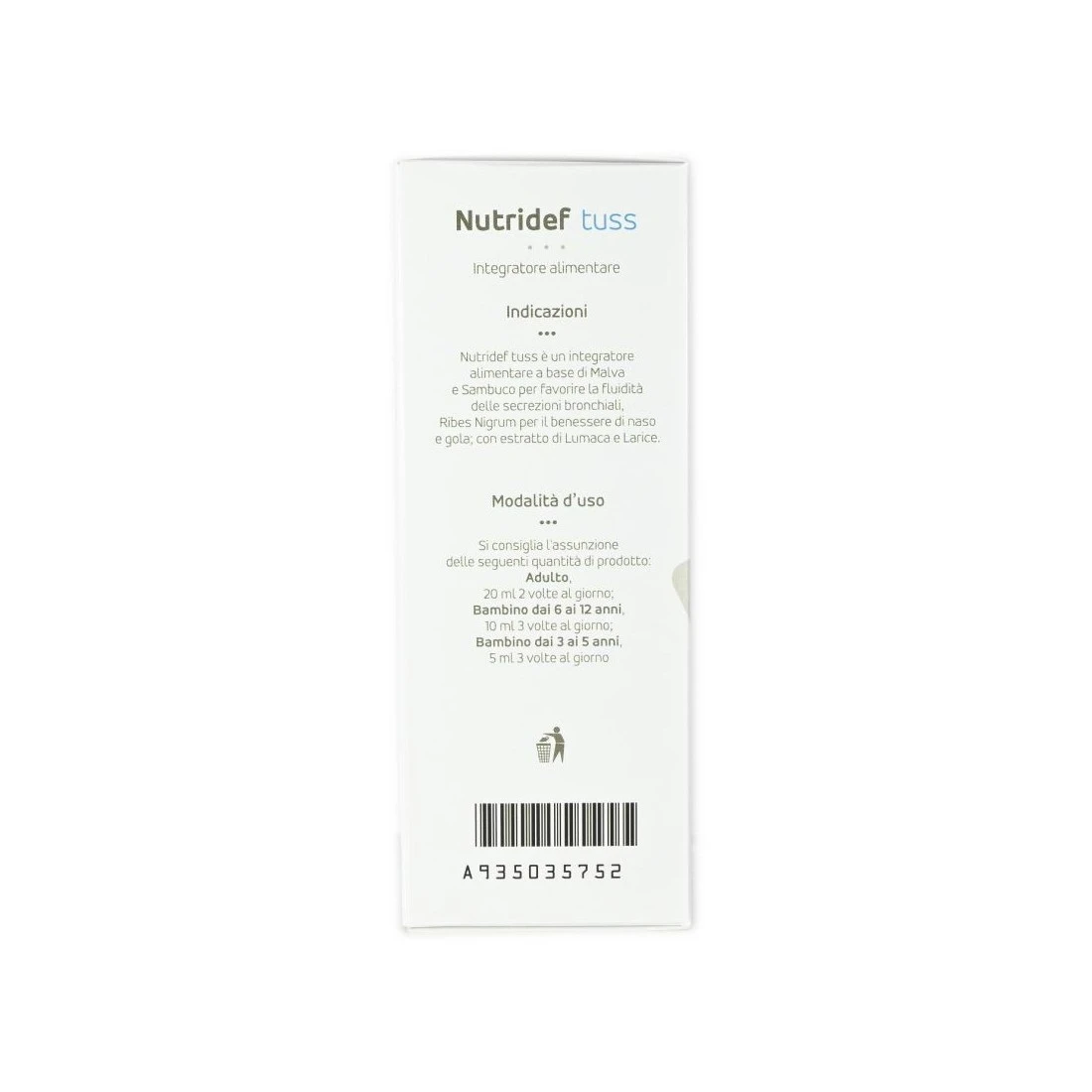 Nutridef tuss è un integratore alimentare a base di Malva e Sambuco per favorire la fluidità delle secrezioni bronchiali, Ribes nigrum per il benessere di naso e gola.