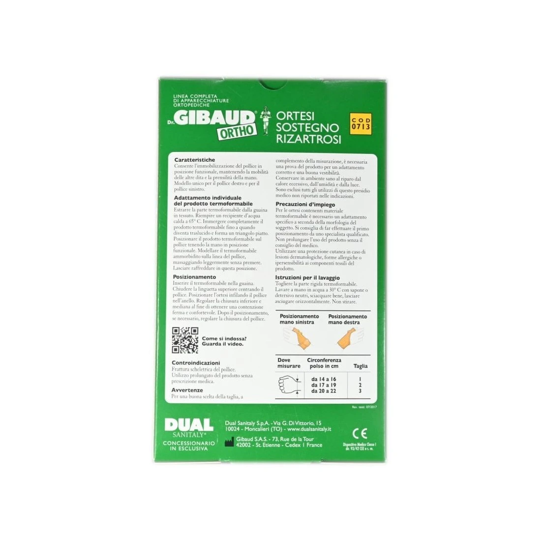 Splint termoformabile che consente l’immobilizzazione del pollice in posizione funzionale.