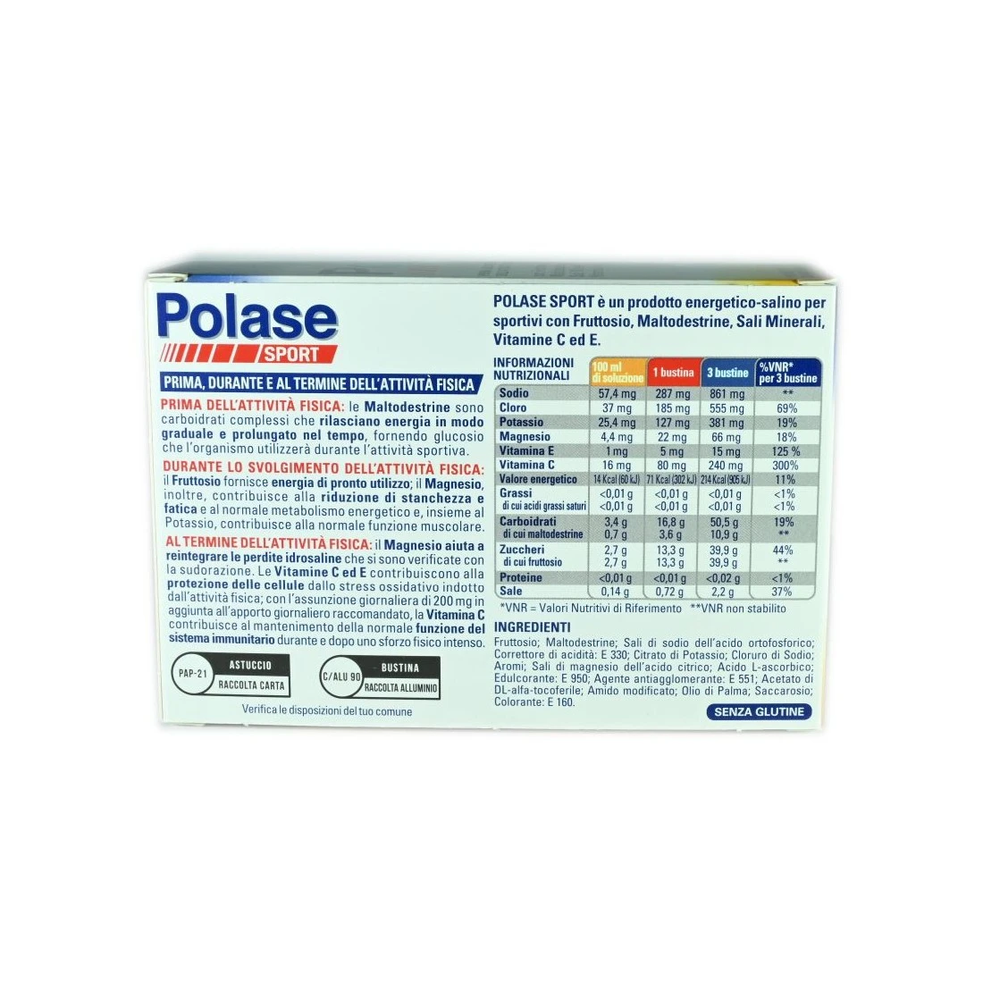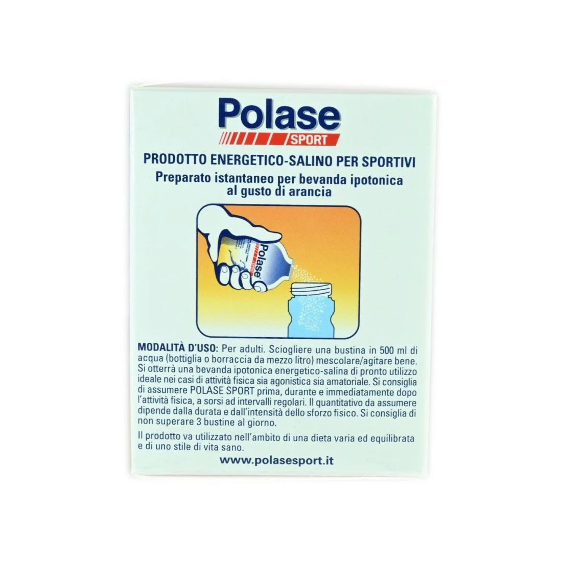 Prodotto energetico-salino per sportivi con maltodestrine, fruttosio, magnesio. Particolarmente indicato per sportiva, prima, durante e dopo l’attività fisica.