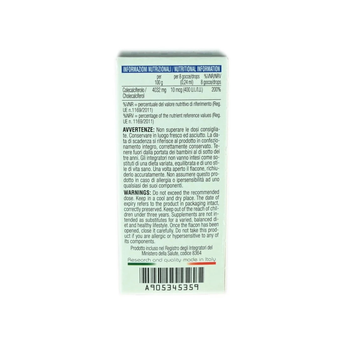 Integratore alimentare di Vitamina D3 (Colecalciferolo), utile a colmare le carenze nutrizionali o gli aumentati fabbisogni di tale nutriente. La Vitamina D3 (Colecalciferolo) contribuisce al mantenimento di ossa e denti normali.