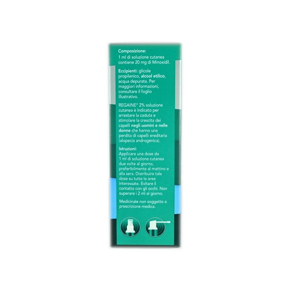 Medicinale contenente 2% di minoxidil, un principio attivo che, utilizzato sul cuoio capelluto, è in grado di arrestare la caduta e stimolare la crescita dei capelli.