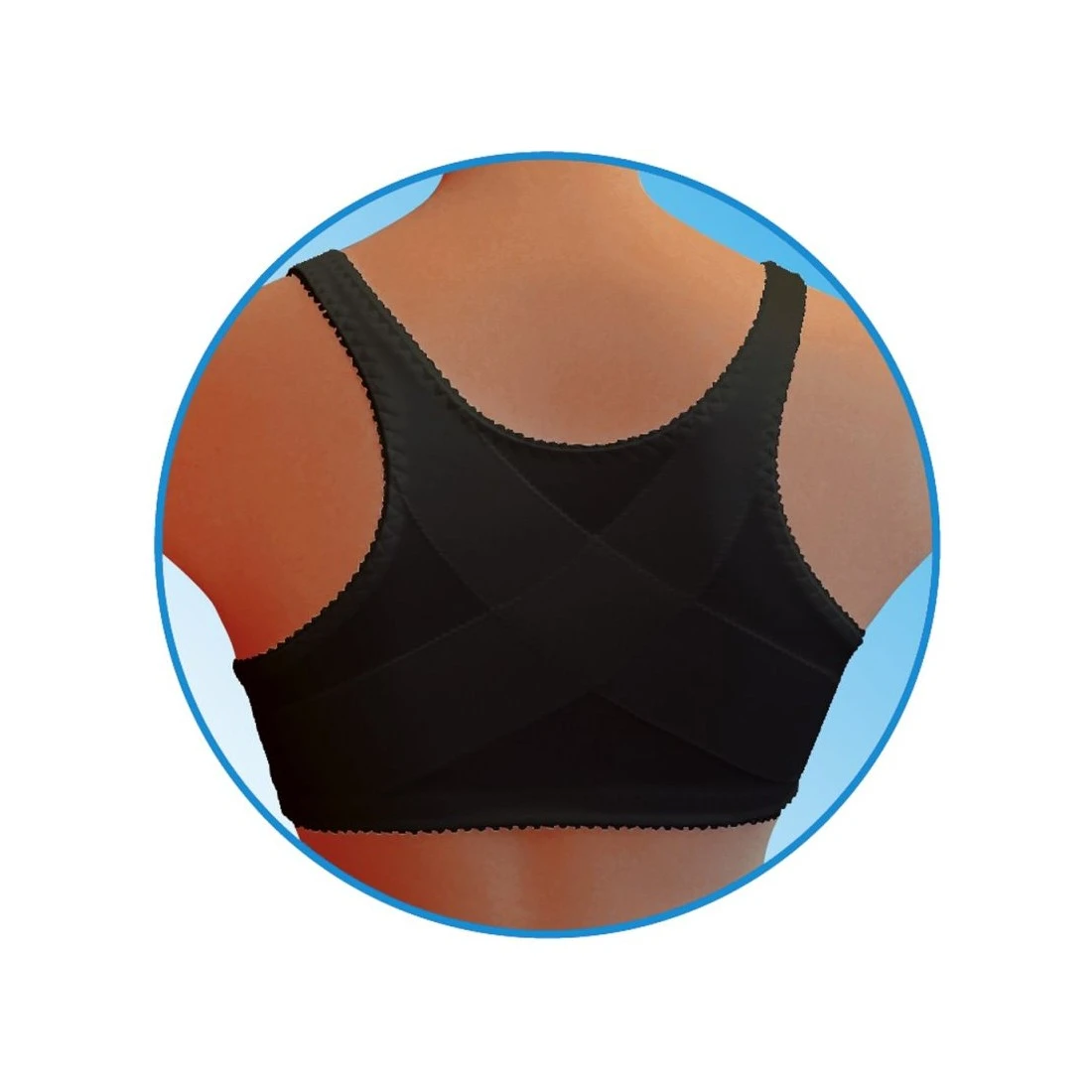 Reggiseno realizzato con raffinato tessuto elasticizzato che presenta a contatto della pelle una superficie in cotone. Ampia e anatomica fasciatura dorsale con inserito l’apposito incrocio sostenitivo.