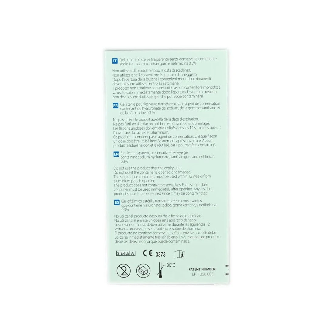 Gel oftalmico sterile trasparente senza conservanti contenente sodio ialuronato, xanthan gum e netilmicina 0,3%. Indicato per la medicazione delle ferite e delle abrasioni della superficie oculare causate da eventi traumatici o susseguenti ad interventi chirurgici.