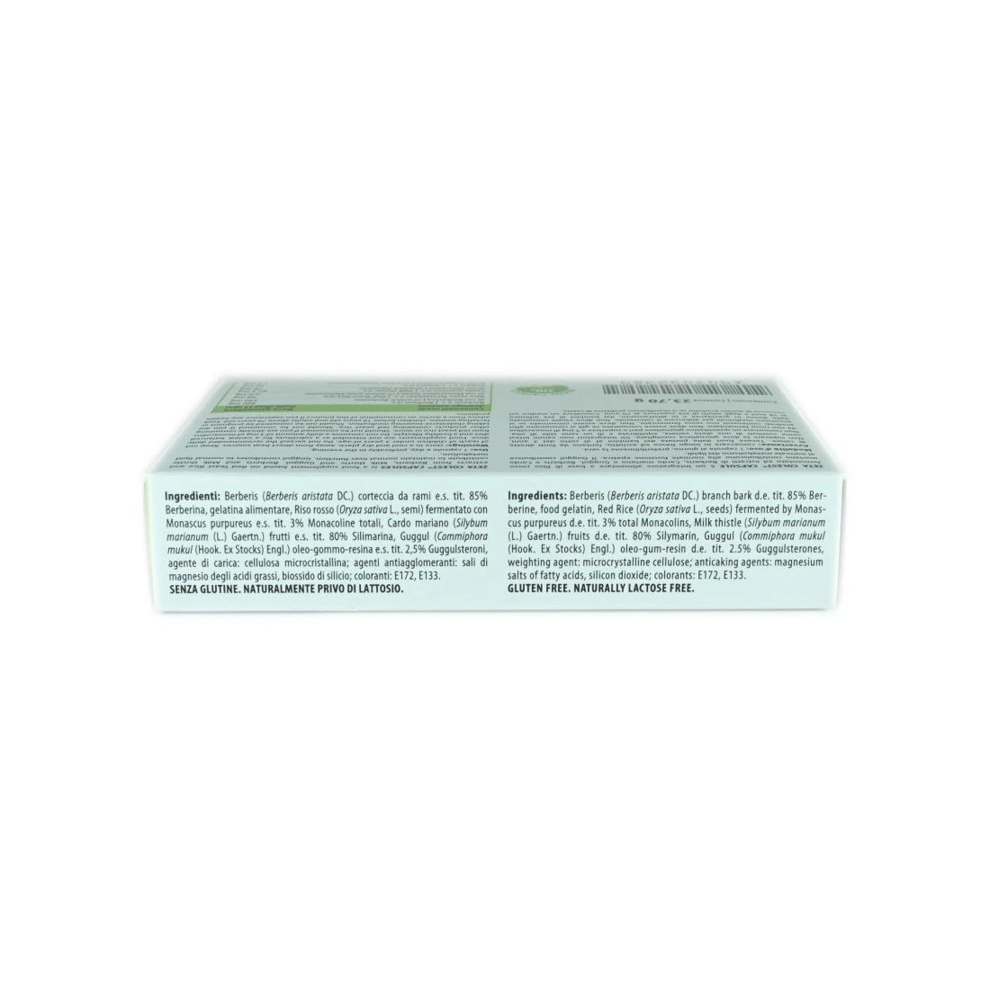 Integratore alimentare a base di riso rosso fermentato ed estratti di Berberis, cardo mariano e guggul. Berberis e cardo mariano contribuiscono alla normale funzione epatica. Il guggul contribuisce al normale metabolismo dei lipidi.